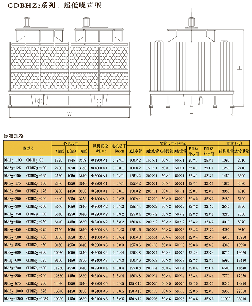 機(jī)械工業(yè)部第四設(shè)計(jì)研究院玻璃鋼所從1971年開(kāi)始研究設(shè)計(jì)冷卻塔,是我國(guó)“玻璃纖維增強(qiáng)塑料冷卻塔”標(biāo)準(zhǔn)的主編和編制單位,也是目前我國(guó)專業(yè)冷卻塔設(shè)計(jì)所,成果曾多次獲省、市、部級(jí)科技進(jìn)步獎(jiǎng)和重大科技成果獎(jiǎng)。本系列冷卻塔是機(jī)械工業(yè)部第四設(shè)計(jì)研究院在原DBHZ系列及CDBHZ系列的基礎(chǔ)上,根據(jù)實(shí)際使用情況和進(jìn)一步的理論計(jì)算,按國(guó)家標(biāo)準(zhǔn)(GB7190.1-1997)“玻璃纖維增強(qiáng)塑料冷卻”塔的部分: