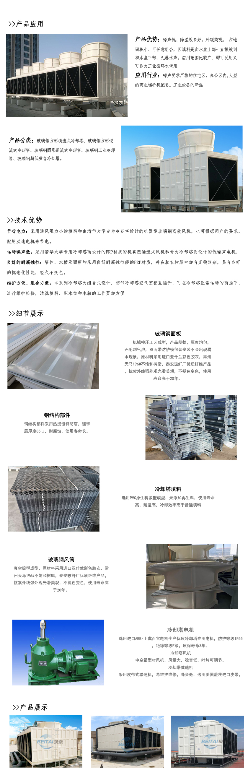 “中小型玻璃纖維增強(qiáng)塑料冷卻塔”規(guī)定的熱力性能及噪聲數(shù)值進(jìn)行設(shè)計(jì)的新型橫流式玻璃鋼冷卻塔。